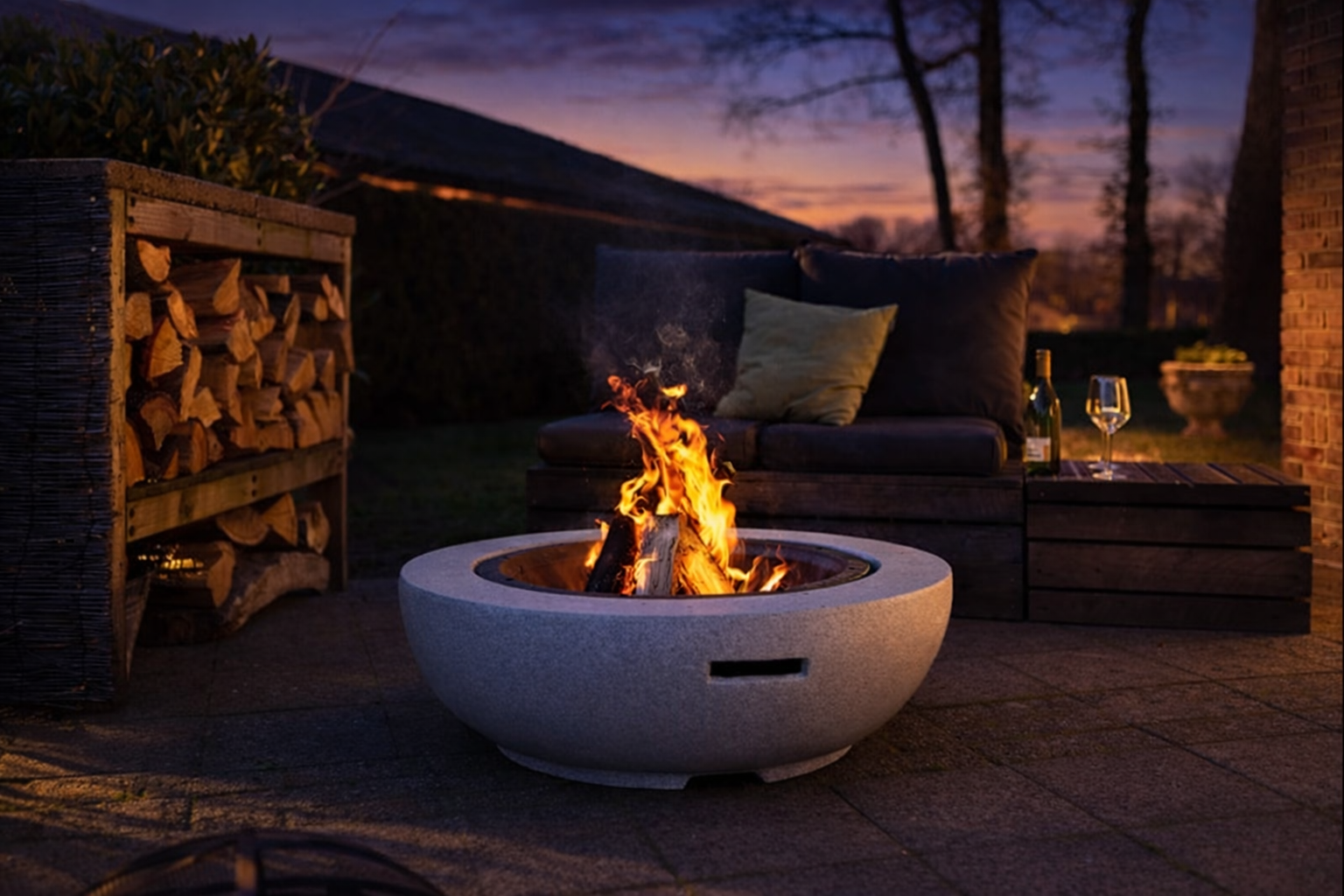 Grey Fire Bowl Pit Outdoor Garden Deco made from Magnesium Oxide.